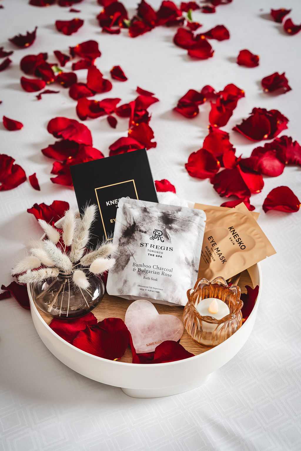 Romance at the St. Regis Toronto extends beyond aesthetics into wellness. Couples receive a curated spa welcome package along with a $200 spa credit, inviting guests to unwind together rather than rush through the weekend. A sunset swim in the heated pool or hot tub adds a distinctly Toronto touch, with steam rising against the winter skyline during the early evening hours.